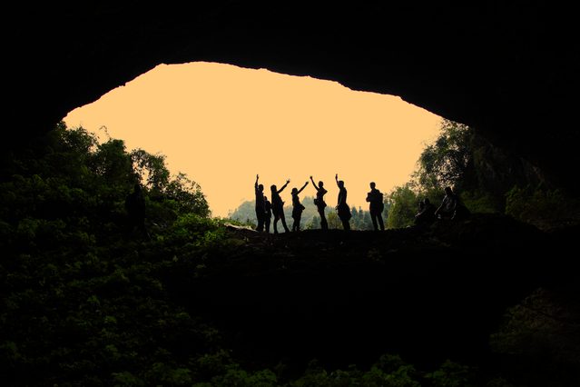 这次行动虽然天公不作美,阴天,但不影响一行人兴致。在当地导游的带领导下,备足干粮、水,带上电筒。一路上风景不错,奇花异草,满目苍翠,在茂密的竹林、树林、杂草、溶洞中穿行。
