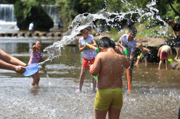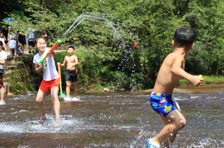 如此高温,不玩水就没有灵魂了,掬一捧溪水,与水花撞个满怀,水枪、水盆齐上阵,纵情山水间,解锁消暑新体验。